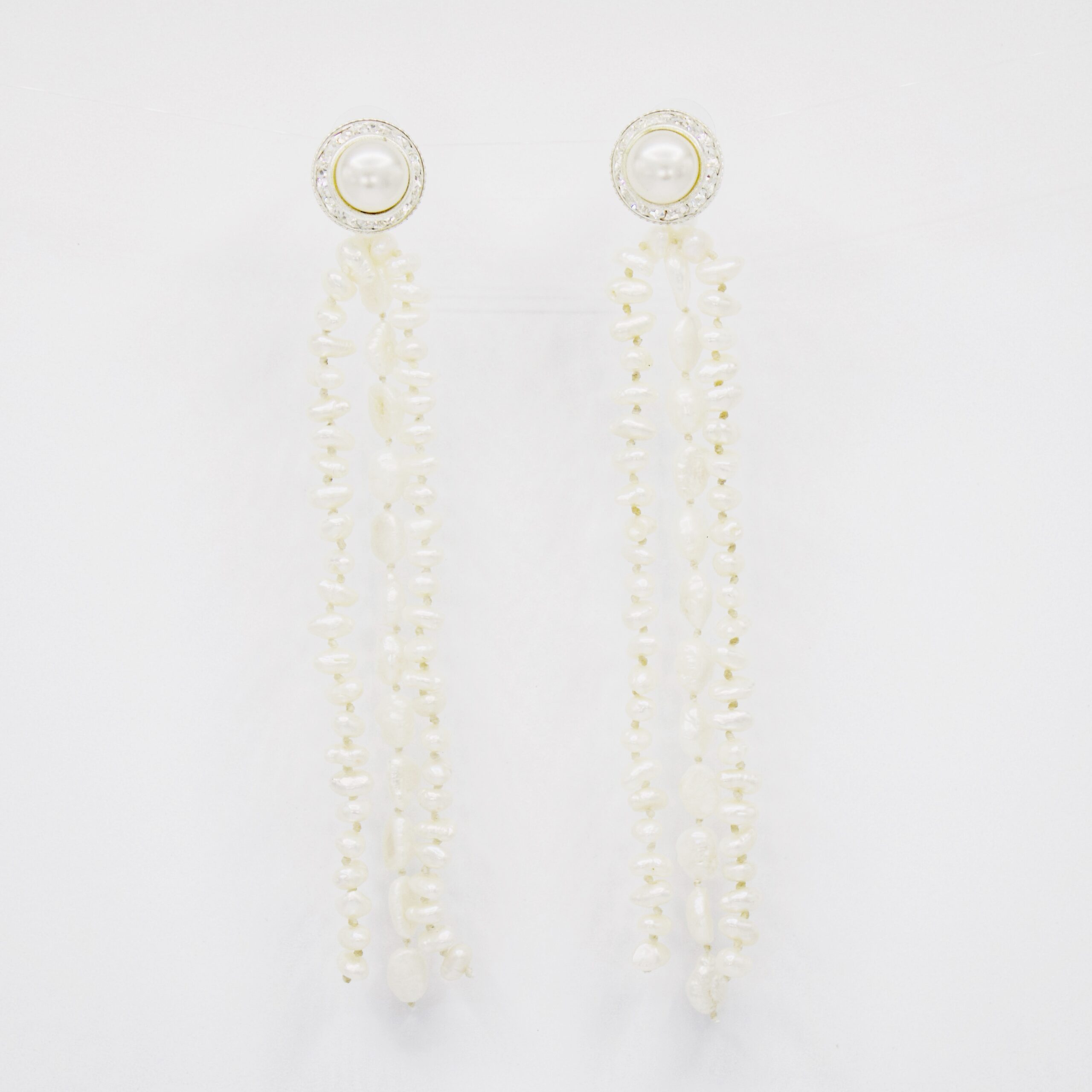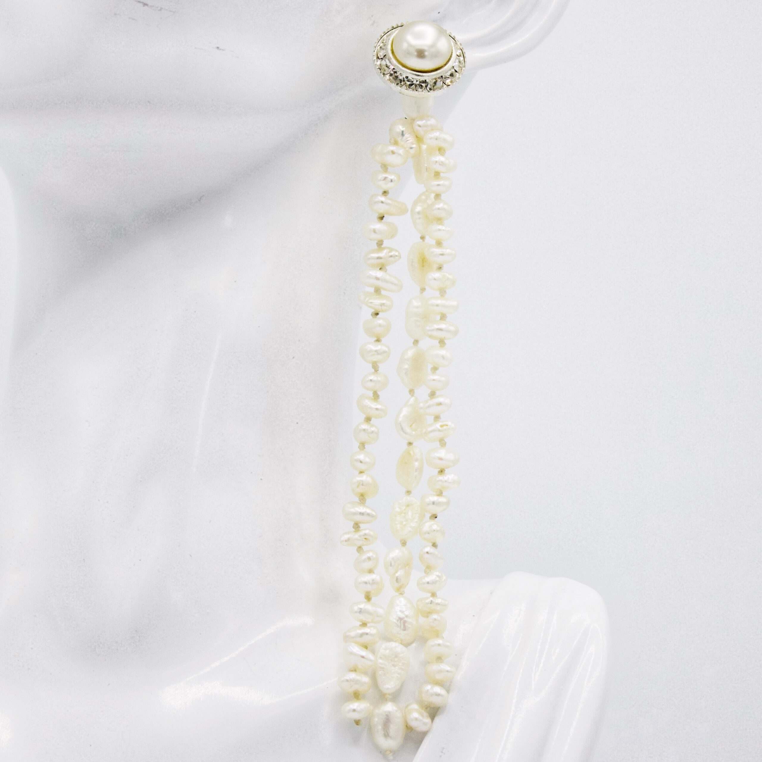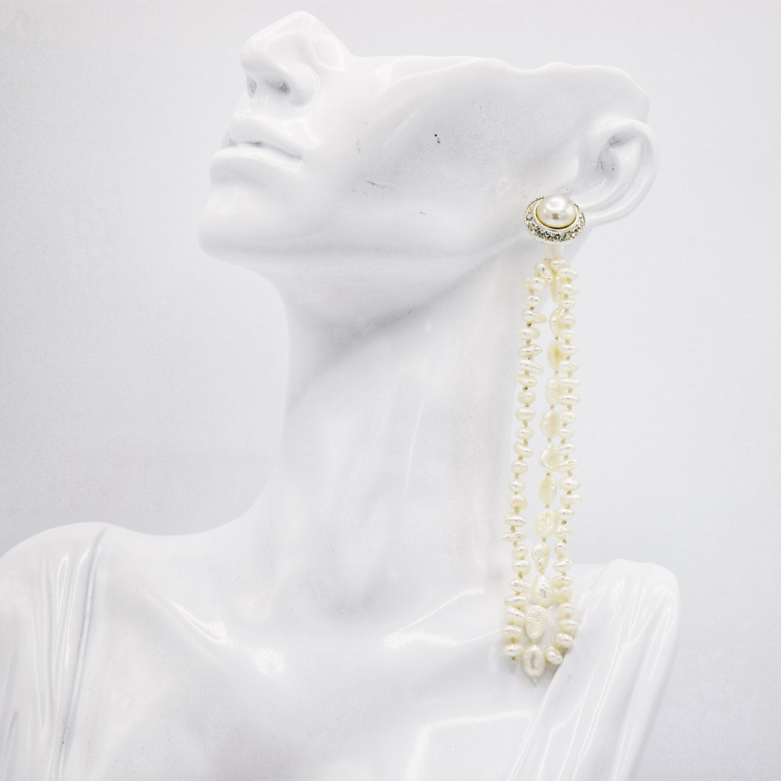 Make an unforgettable impression with Angélique, featuring three flowing strands of pearls suspended from a vintage button. Designed for graceful movement and fluidity, this piece adds elevated drama to any ensemble. Feminine, bold, and unapologetically refined.
