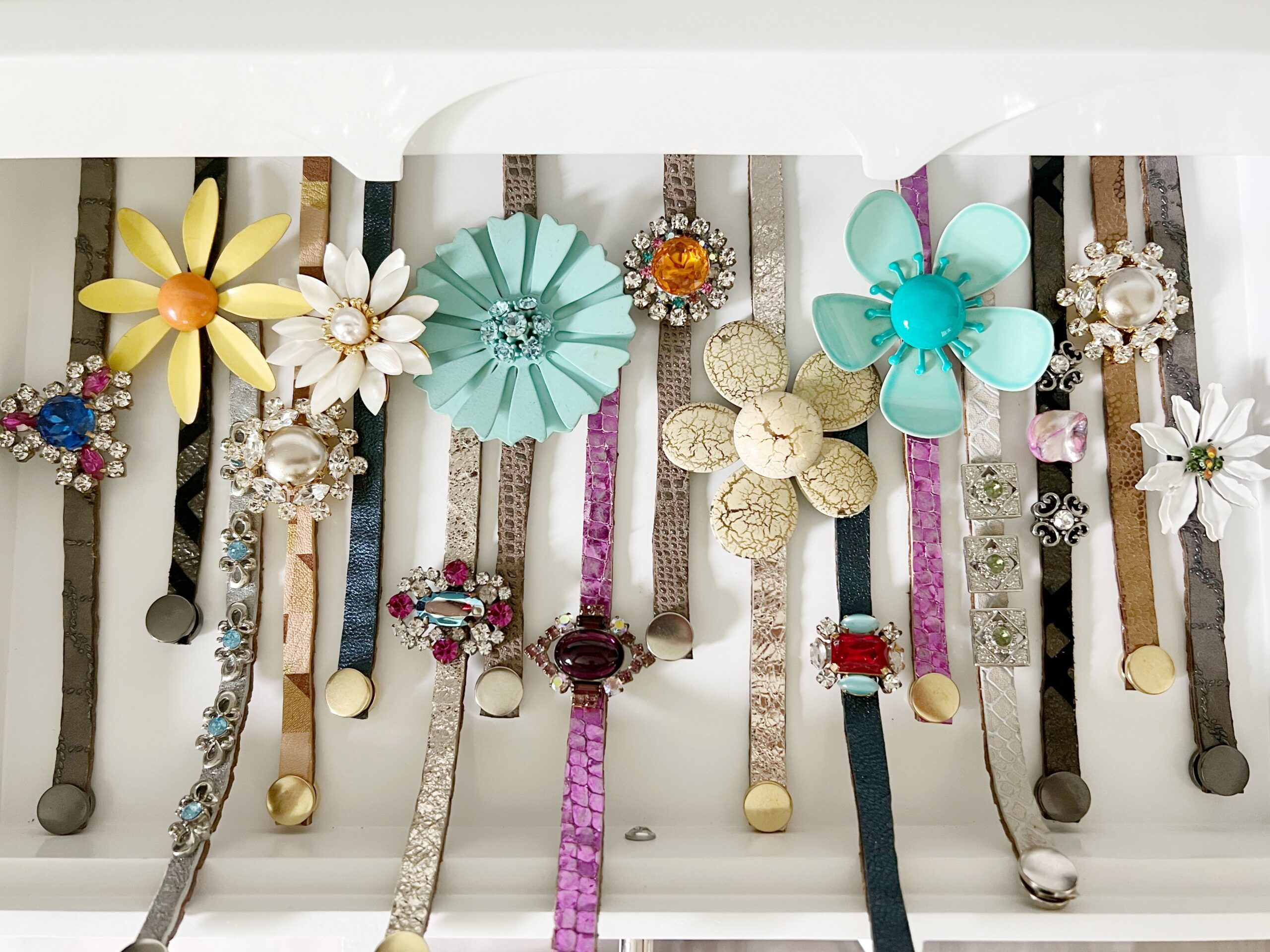 Each of these bracelets feature a slim leather band in rich, hand-selected hues offers a soft contrast to a bold unique vintage button or charm. The snap closure provides ease and comfort, while the vintage accent adds character and edge. Nadine is perfect for those who blend refinement with rustic charm.