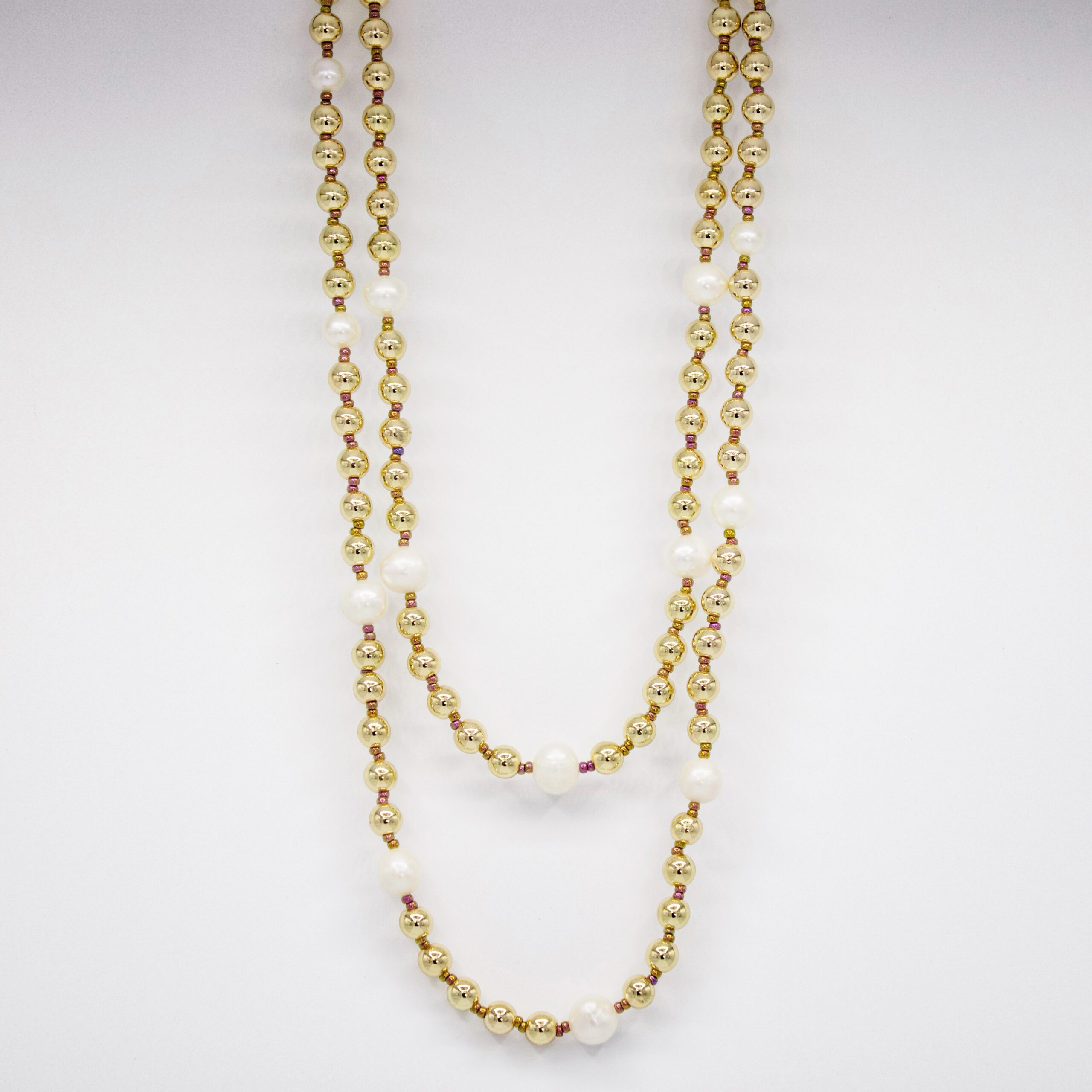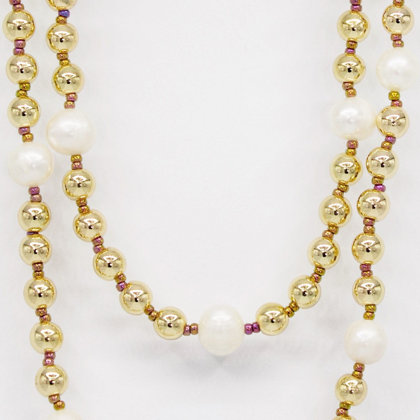 Shorter strand of pearls measures 16 inches, longer strand measures 20 inches to meeting point.